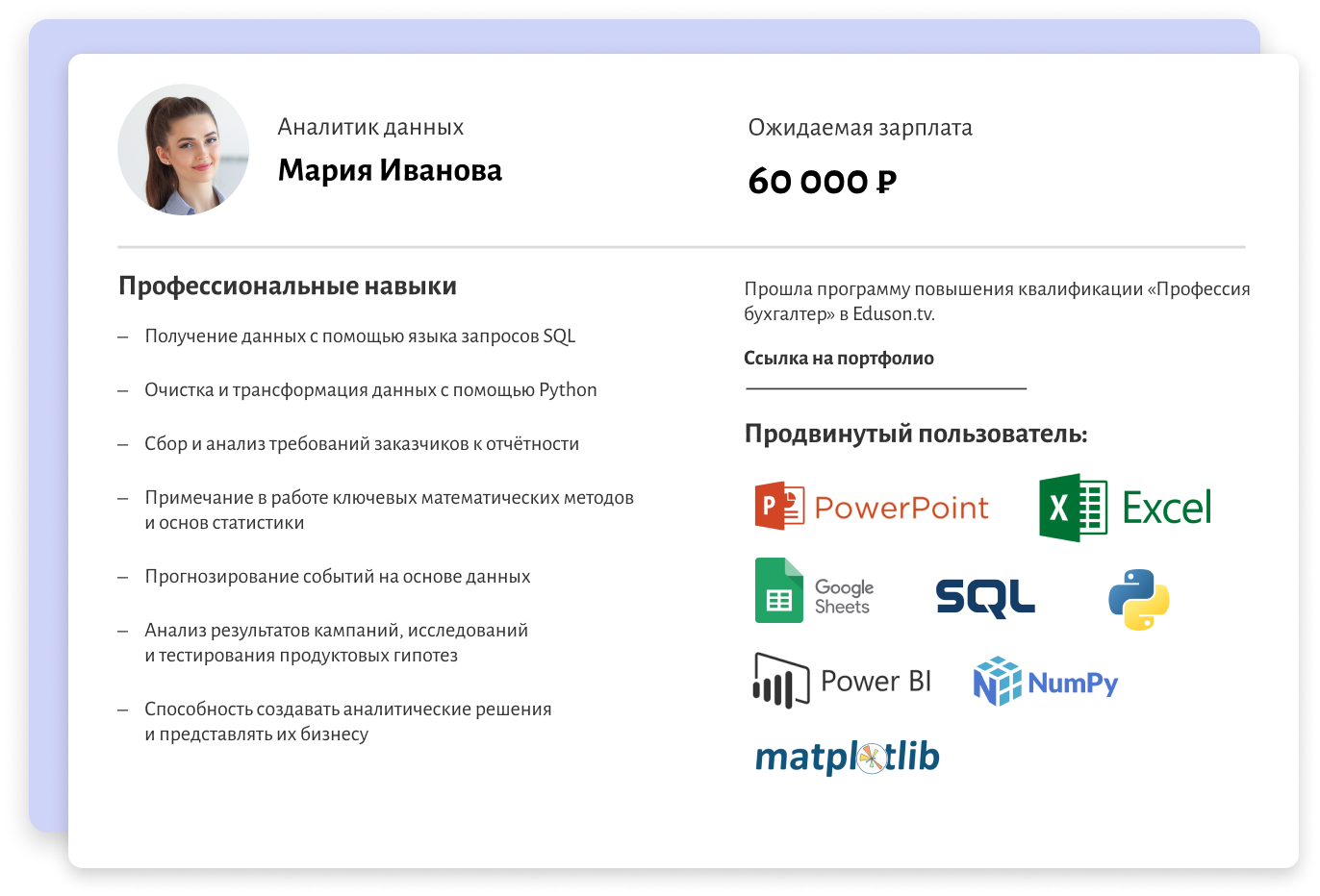 Ваше резюме после прохождения курса