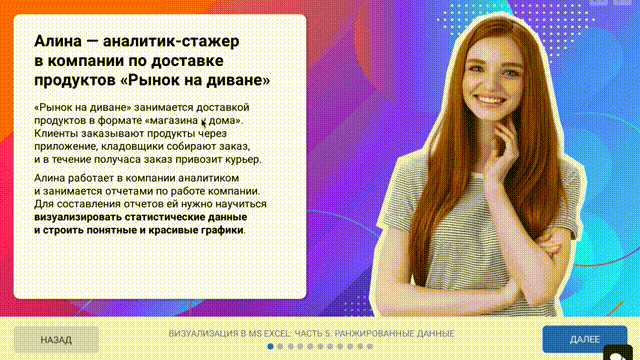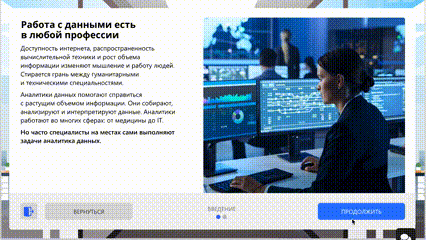 На курсе вы сразу приступаете к практике, работая в копии интерфейсов инструментов аналитики. Тренажер дает подсказки и пошаговые инструкции.