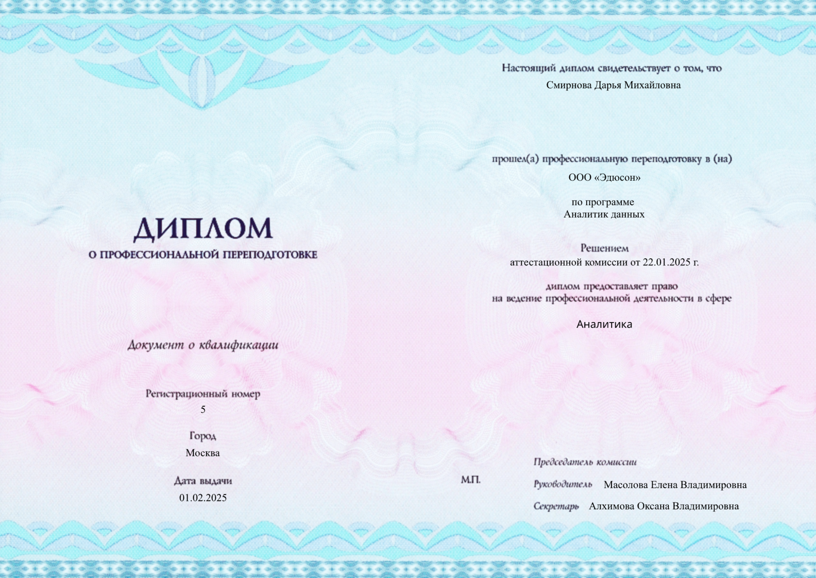 После окончания курса вы получите удостоверение о повышении квалификации установленного образца. Дополнительно вы получите официальный диплом о прохождении курса с уникальным номером, печатью Академии и подписью ее основателя.