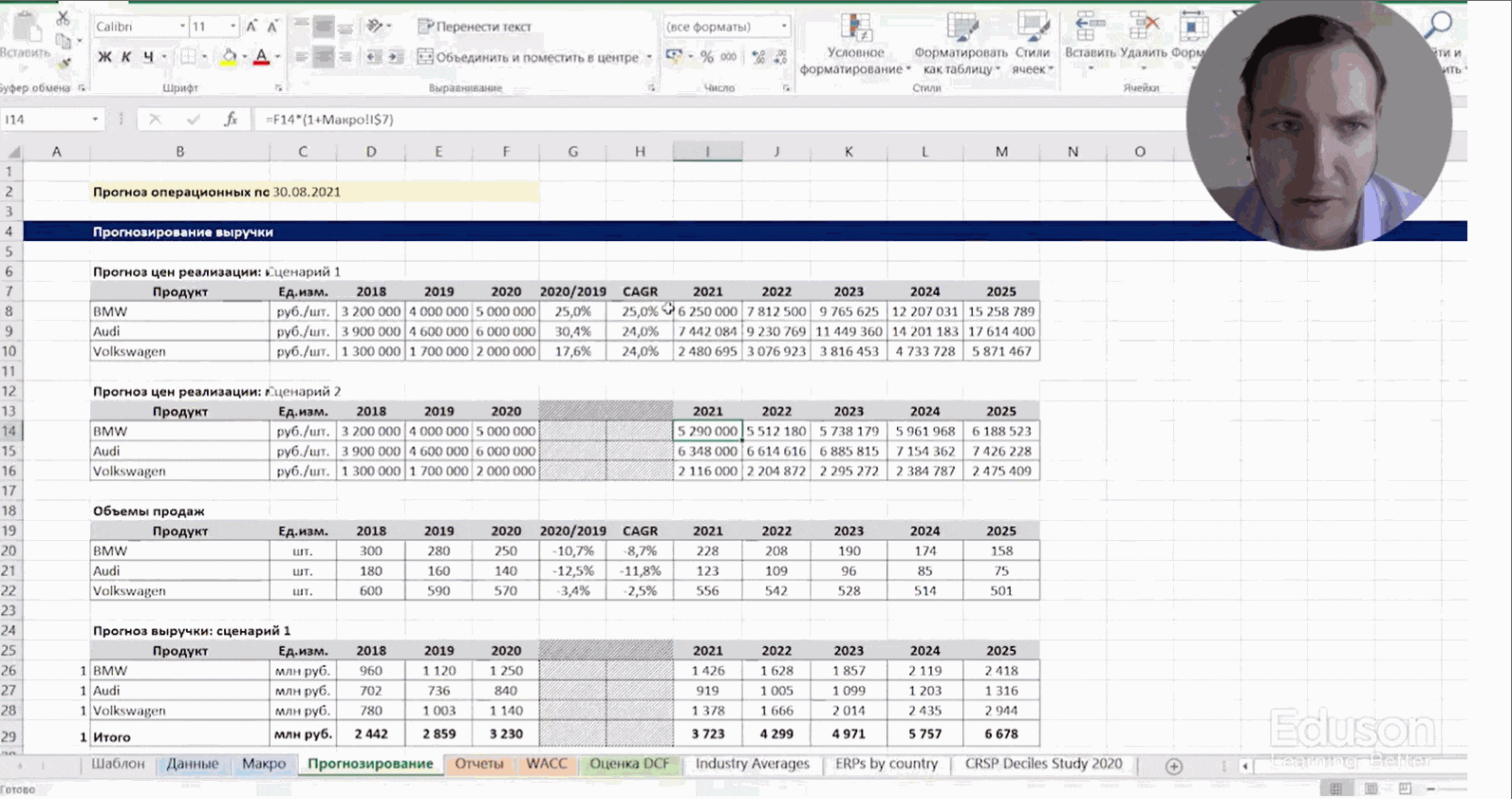 Прогнозирование операционных показателей: выручки, OPEX и CAGR