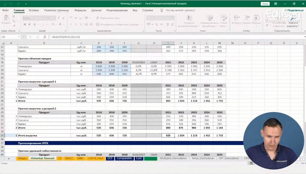 Научитесь корректно учитывать различные данные при построении фин. модели: налоги, аренду, объемы производства, продажи, затраты на ремонт, закупку сырья, зарплату сотрудников и другие.