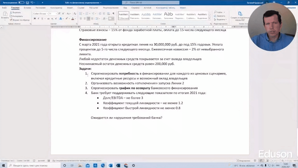 Проведете оценку финансового состояния компании с учетом изменяющихся вводных