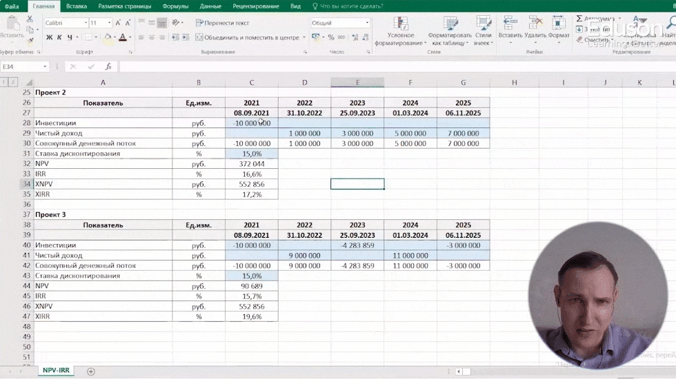 Научитесь применять функции MS Excel для оценки инвестиционных проектов. Рассчитаете инвестиционные коэффициенты IRR, NPV, XIRR и XNPV.