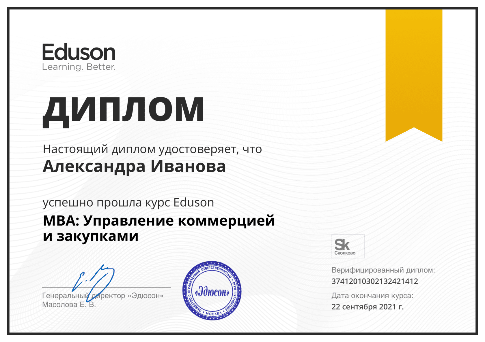 После прохождения всех уроков и практических кейсов курса вы получаете официальный диплом, который сможете указать в резюме.